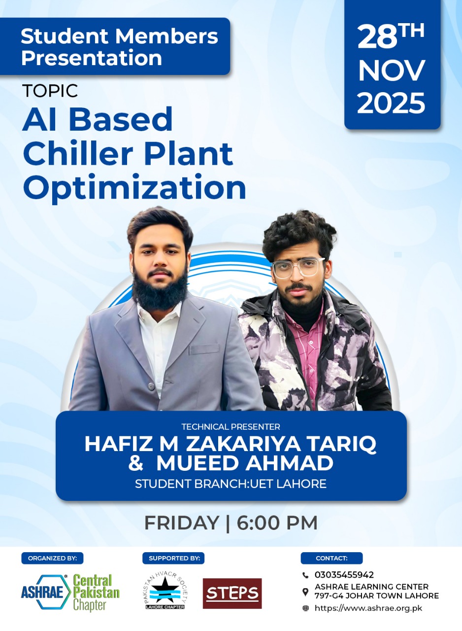 When you become a member of the ASHRAE Central Pakistan Chapter (CPC). you will be the part of the elite international ASHRAE engineering society.